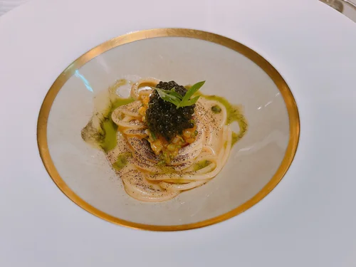 Plump Tender Sea Scallops Set A Top Panko Crusted Crab Cakes In A Base Of Wasabi Coconut Sauce Wowsa Fine Dining Recipes Fine Food Food